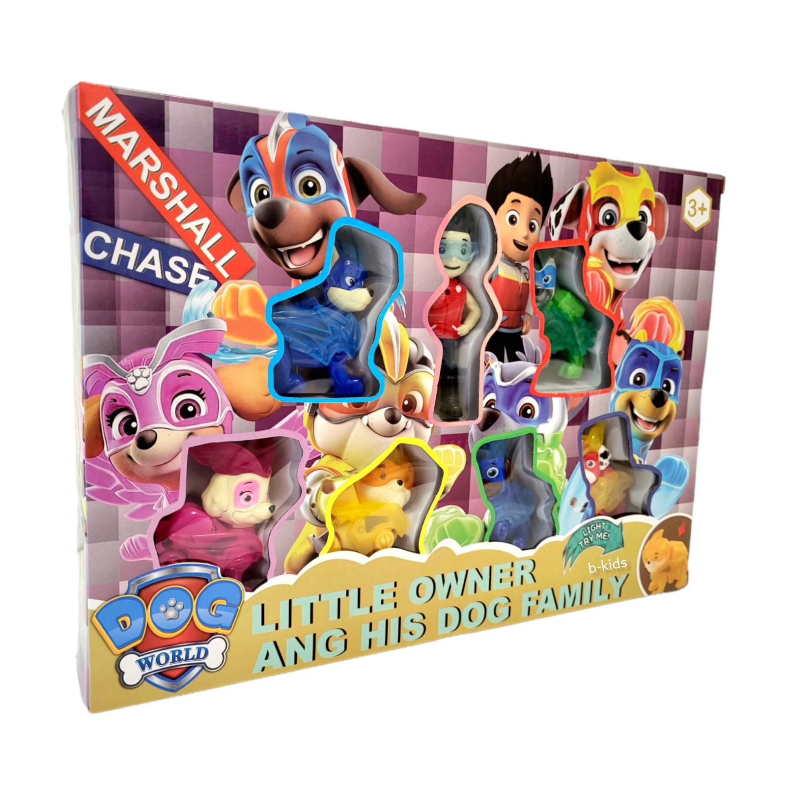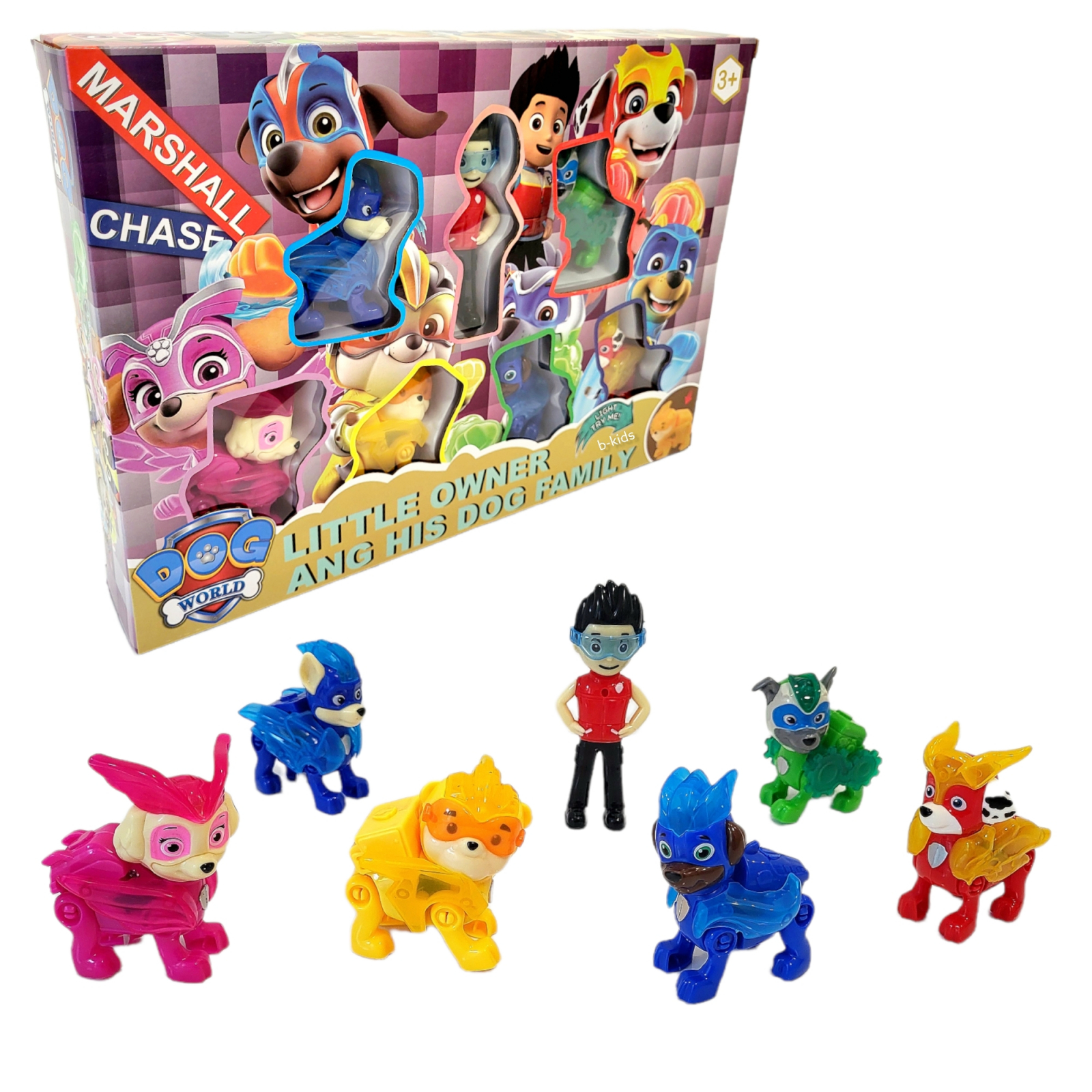 Set cu 7 figurine Patrula catelusilor, seria se concentreaza asupra unui baiat numit Ryder, care conduce o echipa de caini de cautare si de salvare, cunoscuta sub numele de Patrula catelusilor. Acestia lucreaza impreuna in misiuni pentru a proteja comunitatea din Golful Aventurii.