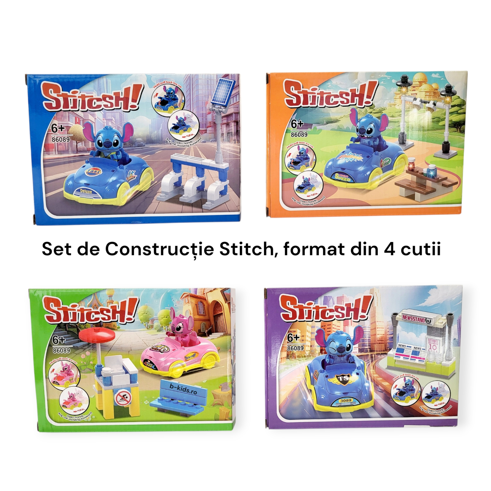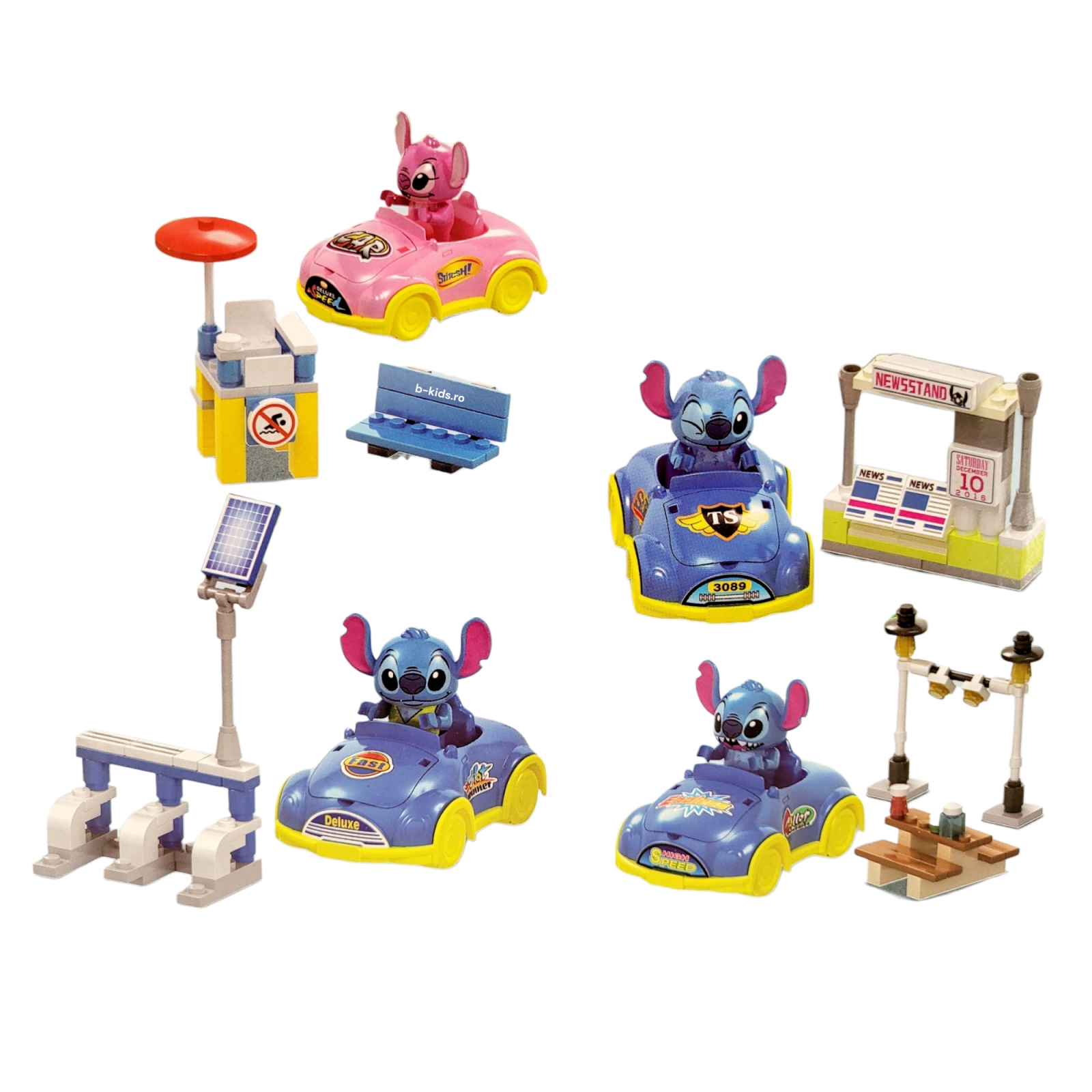 Design Modular: Fiecare cutie este un set independent, dar împreună formează un mic univers colorat pentru Stitch și Angel.