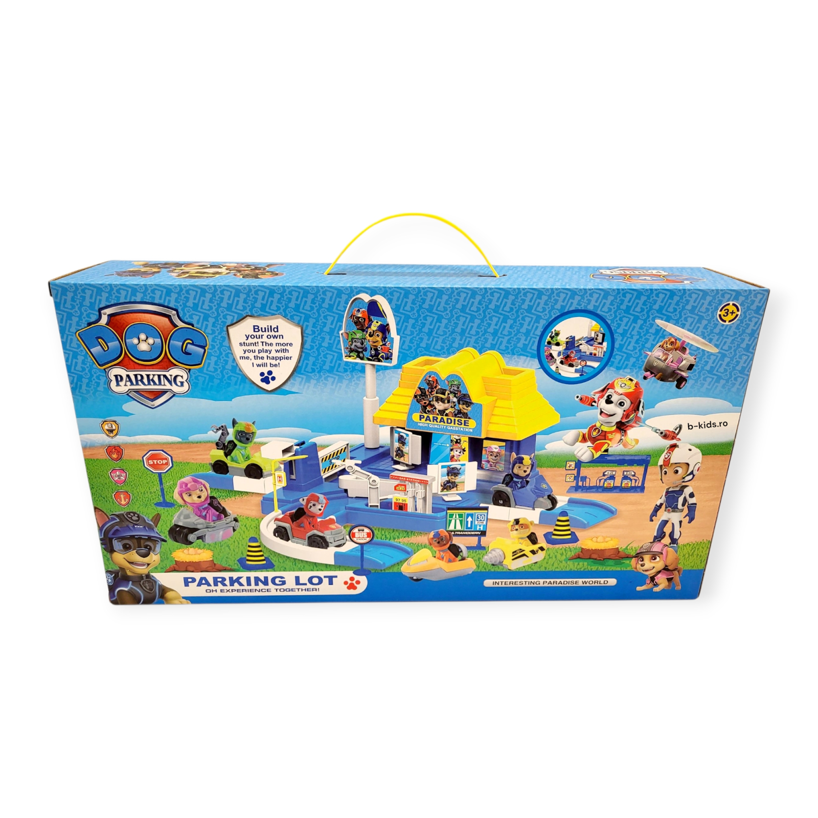 Set de joaca parcare Patrula Catelusilor. Aceasta jucrie poate fi cadoul perfect atat pentru pentru fete cat și băieți.