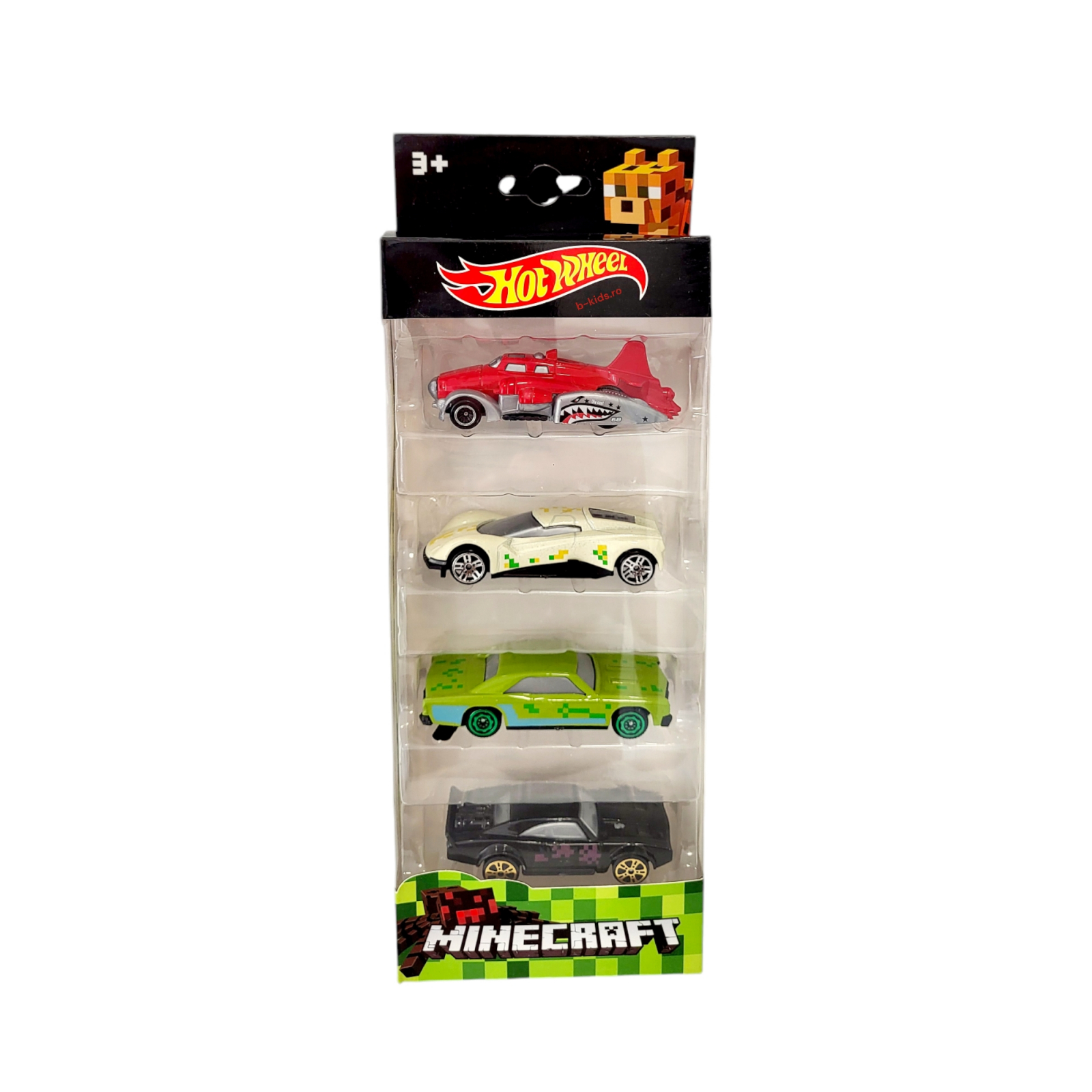 Set format din 4 masinute metalice Hot Wheel - Minecraft, de diferite modele.