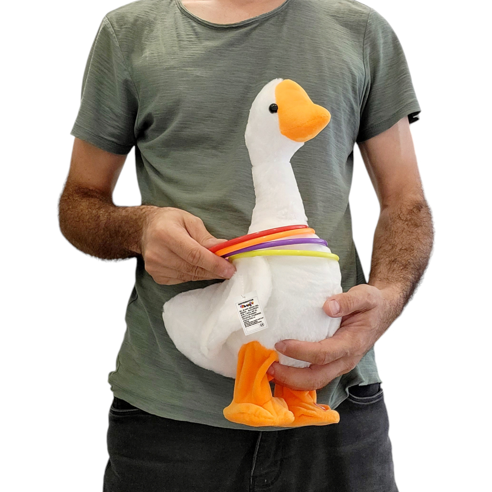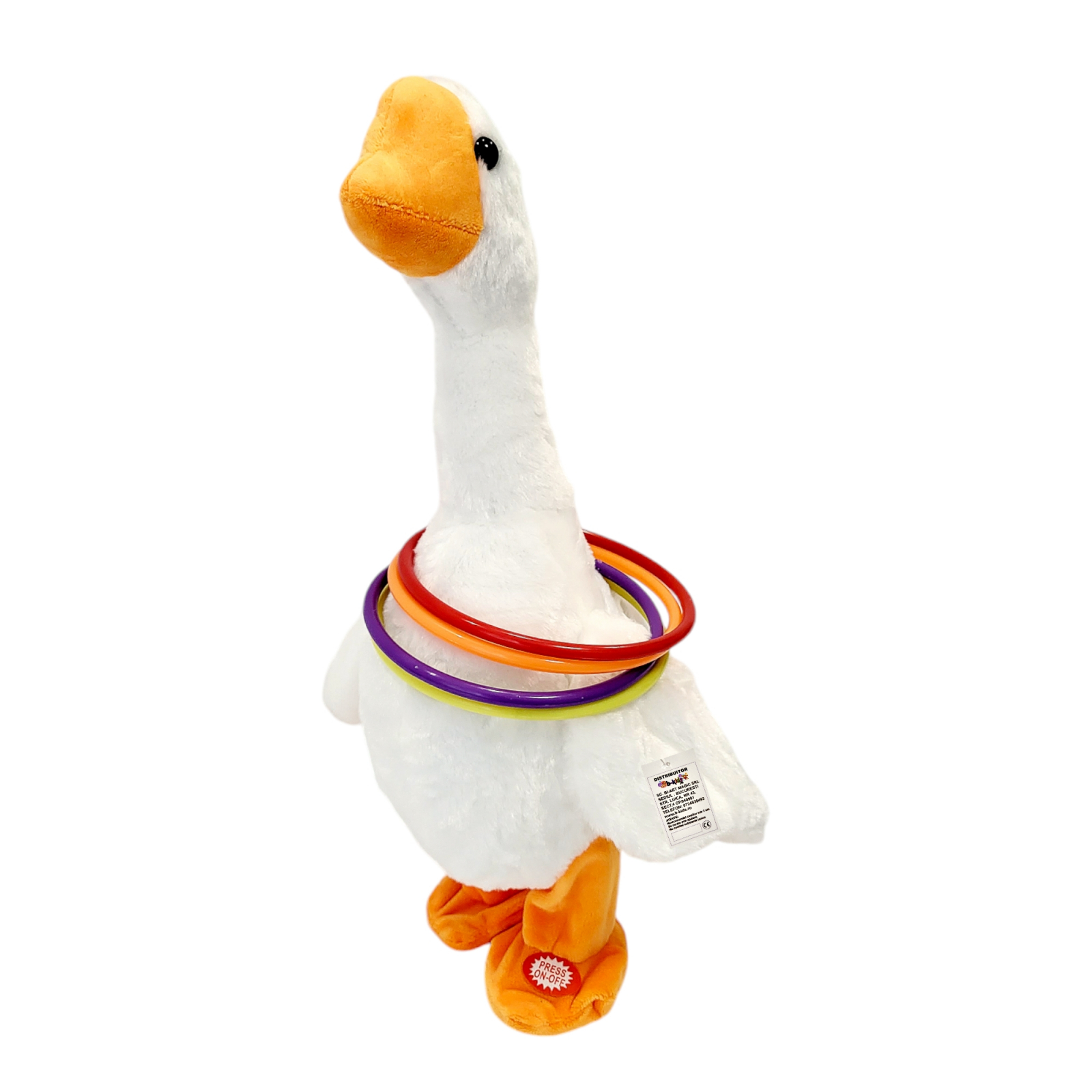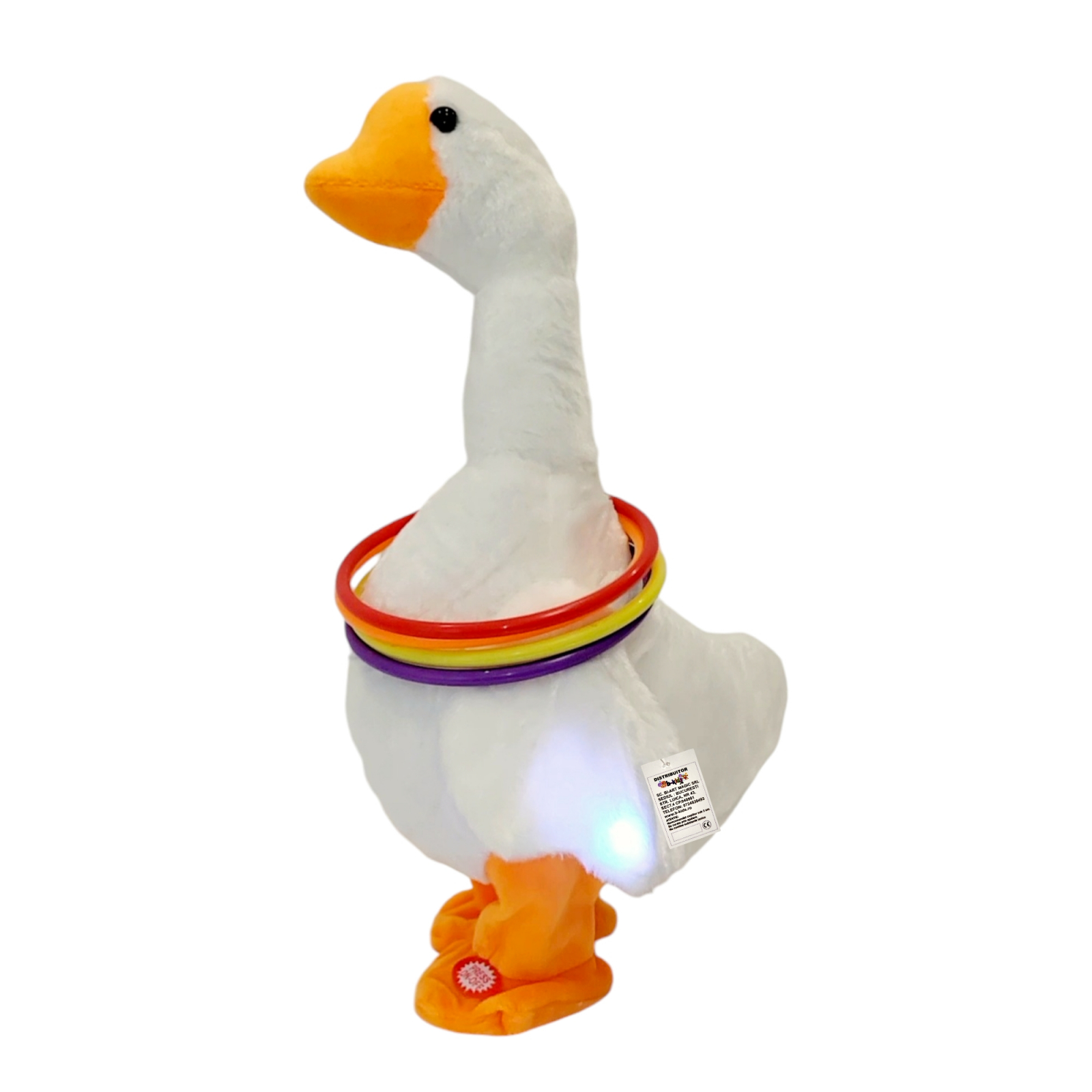 Jucarie interactiva din plus, Rata cu cercuri care repeta tot ce spui, merge si canta diferite melodii, iiumineaza aripile.