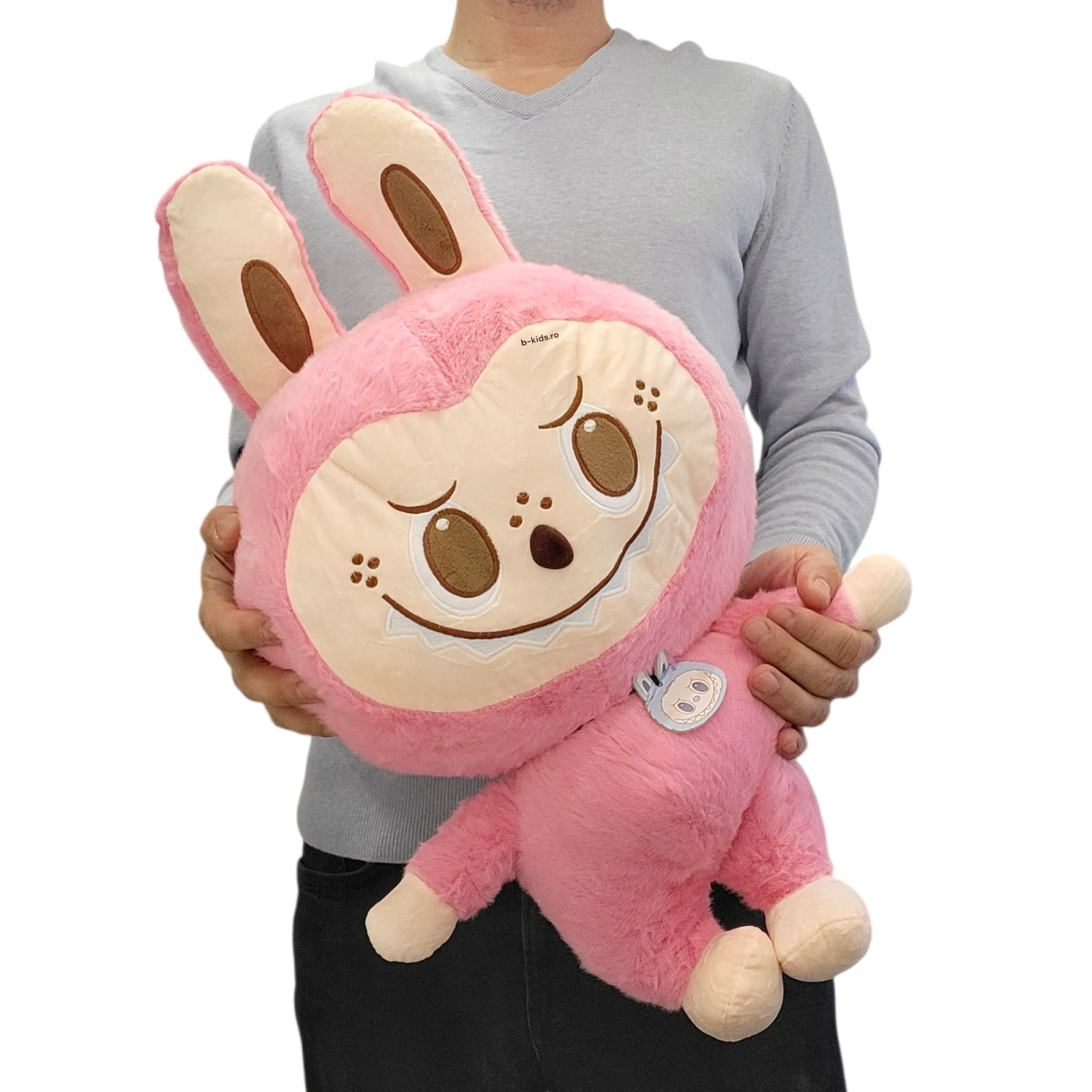 Labubu Mare este varianta ideală pentru cei care iubesc plușurile mari și pufoase. Cu dimensiunea sa generoasă, este perfect pentru îmbrățișări, relaxare sau decor în cameră.