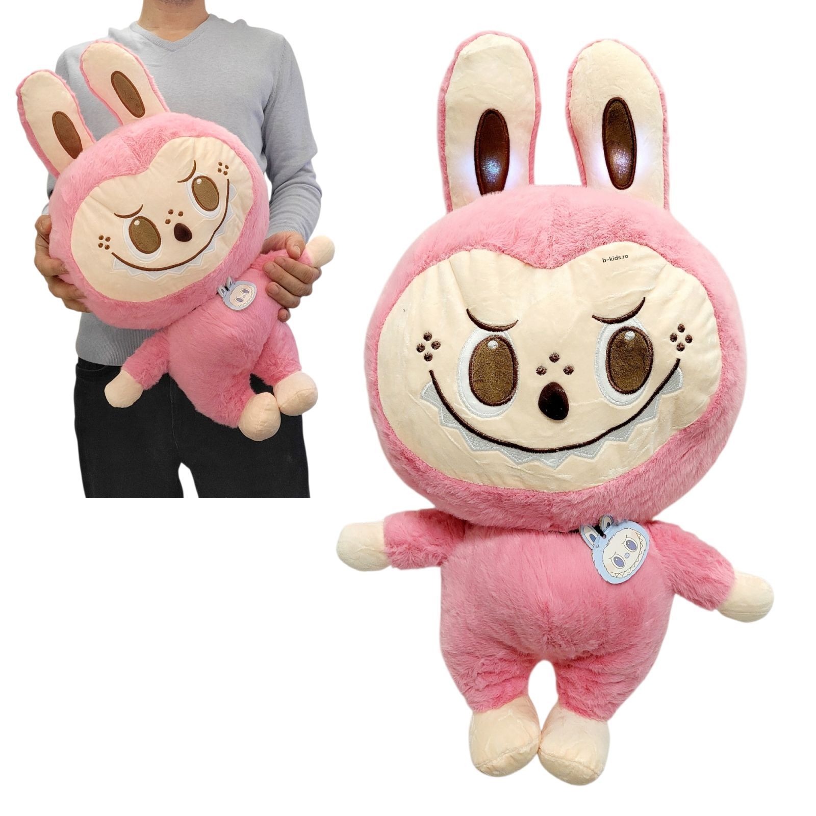 Jucarie Labubu plus muzical si cu lumini, mare, 60 cm