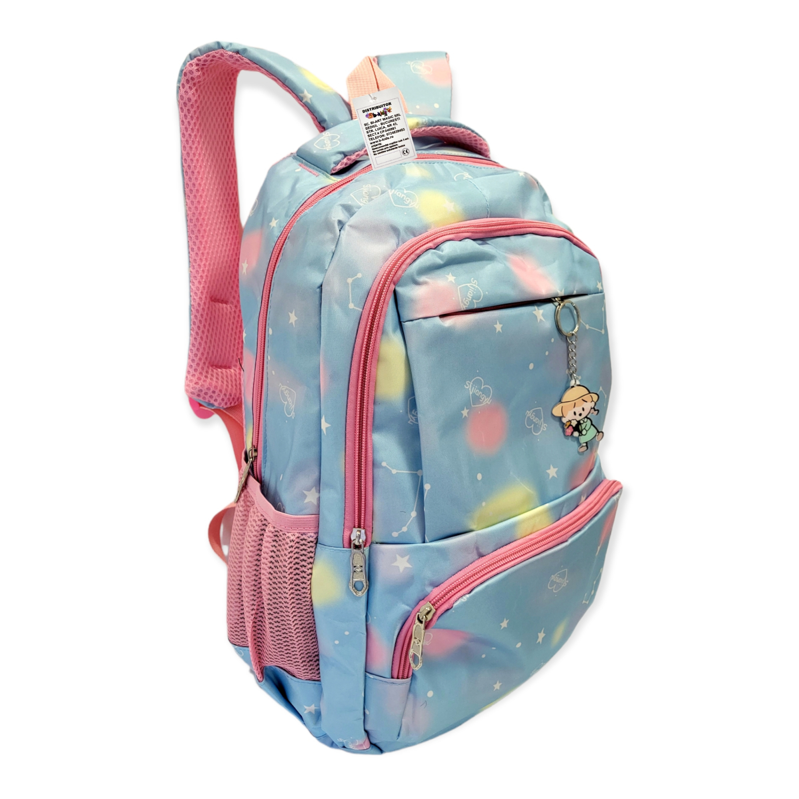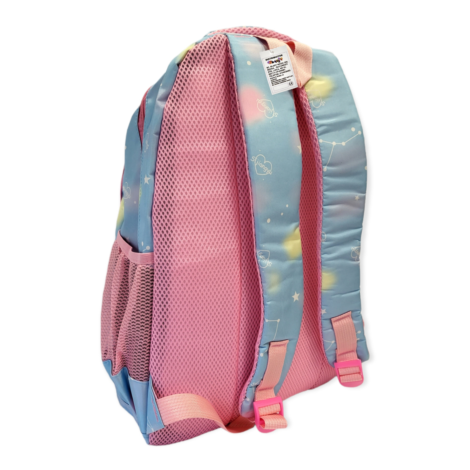 Ghiozdanul scolar Constelatie, este recomandat pentru inceputul de scoala . Este util la plimbarile in parc, tabara, excursie, etc. Este prevazut cu patru compartimente: unul principal si trei secundare, toate cu fermoar pentru inchidere/deschidere si buzunare in exterior, lateral, cu plasa, special pentru bidoanele de apa. Dispune de un maner fix.